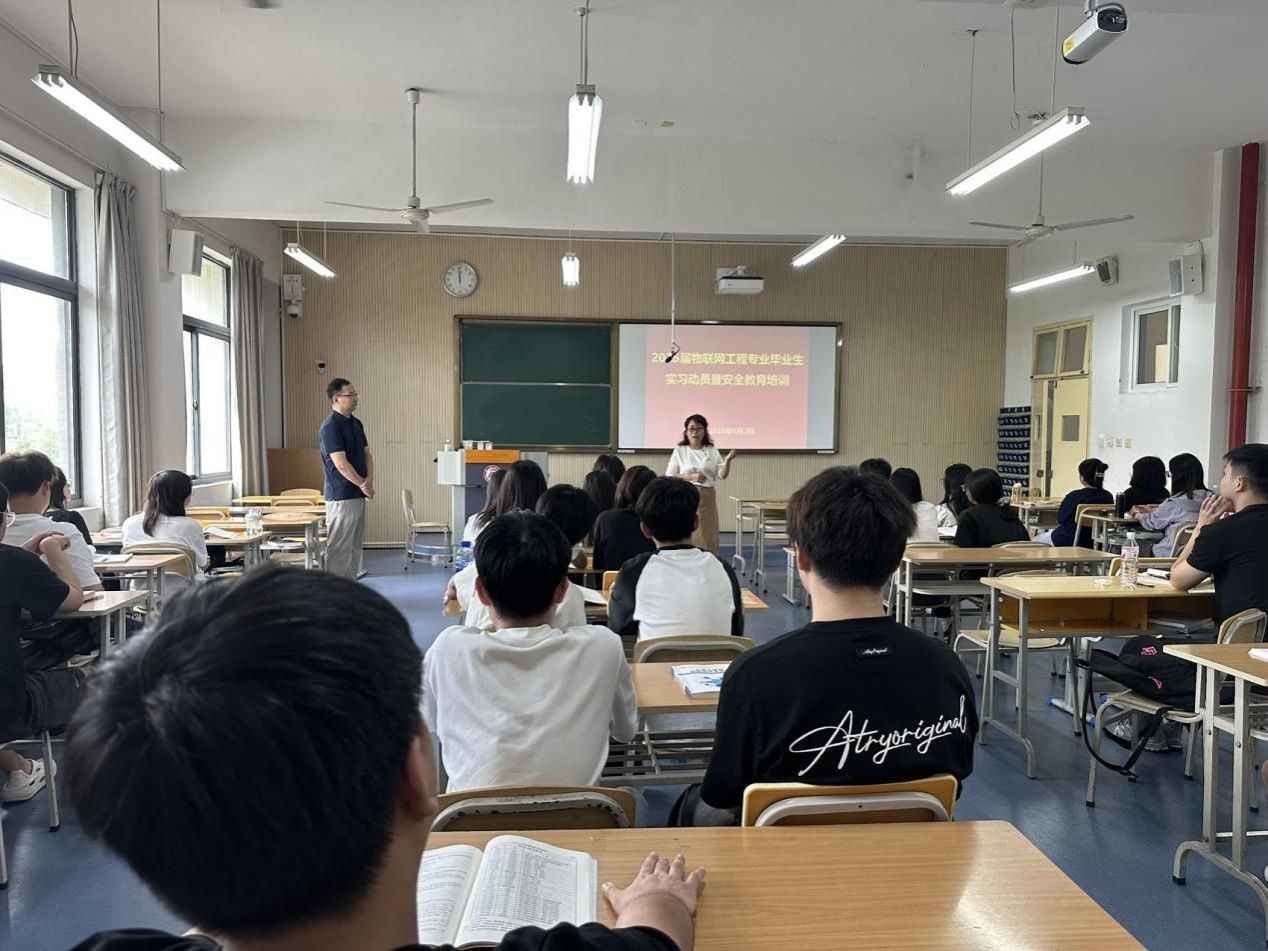 2025年6月3日下午,物联网工程专业2026届毕业生实习动员暨安全教育培训会在江北校区1号教学楼1317教室举行,辅导员成英丽及2026届物联网工程专业全体学生参加了会议,会议由系主任刘星亮主持。