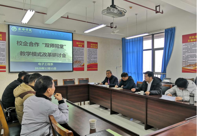 为了深入推进产教融合、校企合作“双师同堂”人才培养模式,同时进一步推进课堂教学改革,增强课堂教学效果,不断提高应用型人才培养质量。2020年12月11日,pa电子官方网站电子工程系在江北校区逸夫科技楼B702举行校企合作“双师同堂”教学模式改革研讨会。电信学院院长陈守满教授、pa电子官方网站校外示范性实践教学基地以及双师课程合作企业雷斌经理、电子工程系相关教师参加了本次专题研讨会。