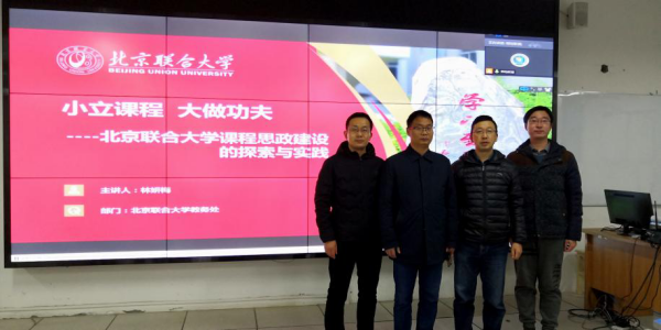 为了推动我院《创新思维》、《互联网+》、《现代教育技术》三门“课程思政”示范课建设,2020年12月13日,pa电子官方网站组织三个“课程思政”示范课建设项目组成员在科技楼A501参加了由北京联合大学组织举办的“‘小立课程大做功夫’——课程思政实践及案例分享直播会”,培训会为期1天。
