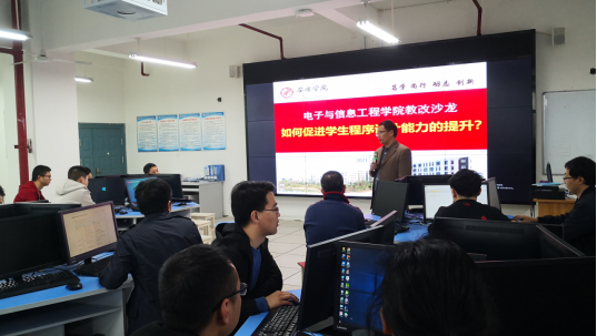 2021年4月25日下午,pa电子官方网站在逸夫科技楼A501实验室开展了主题为“促进学生程序设计能力的提升”教改沙龙活动。院长陈守满、副院长王克刚、各系(教研室)主任、学院全体程序设计语言授课教师参加了此次活动。