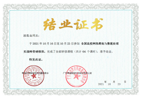 互联网、大数据、云计算、人工智能等现代信息技术深刻改变着人类的生产、生活、学习乃至思维方式,深刻展示了世界发展的前景。为加快建设大数据、人工智能相关专业教师队伍,推动pa电子官方网站建立人才培训和评价体系,提升教师动手实战操作能力、强化授课过程中相关行业实战案例项目分析应用能力。2020年10月16日到10月25日,pa电子官方网站组织陈守满、赵志强、梁建勇、汪红山、巨琛五位老师参加了由广东泰迪智能科技股份有限公司主办的“全国高校大数据与人工智能师资研修班 ”培训课程。本次培训共包括商务数据分析实战、Python网络爬虫与数据处理实战、Python数据挖掘与机器学习实战、深度学习实战四大专题。