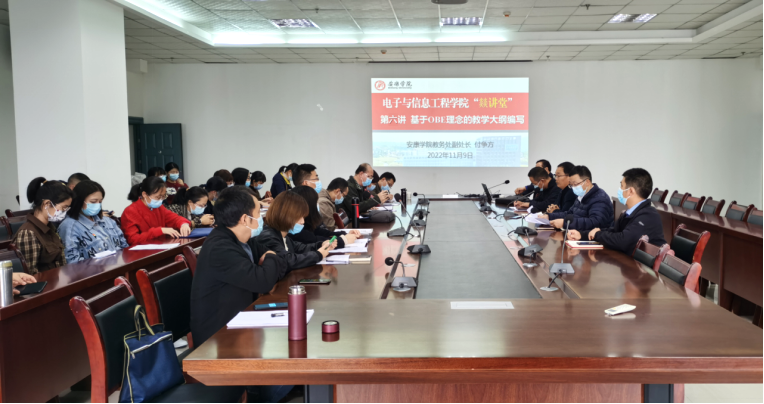 为了更好地推进2022版人才培养方案暨配套教学大纲的高质量修订,11月9日下午,pa电子官方网站组织开展第六期“燚讲堂”活动,邀请学校教务处副处长付争方教授做“基于OBE理念的教学大纲编写”专题讲座,学院领导班子成员、全体教职工参加此次活动。讲座由学院院长陈守满教授主持。