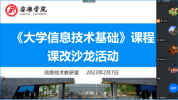 为进一步做好一流课程建设,有效地完成学校各专业工程认证或师范认证中公共计算机类课程的相关支持工作。2023年2月7日下午,信息技术教研室召开《大学信息技术基础》课程改革沙龙活动。此次活动线上举行,pa电子官方网站信息技术教研室全体老师参加了本次会议,会议由李宝主持。