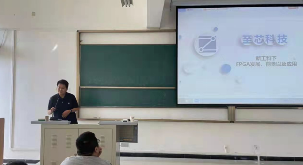 2021年9月29日下午,pa电子官方网站电子工程系在江北1号教学楼1305教室举办新工科背景下FPGA行业技术专题讲座。本次讲座由教育部协同育人合作单位、pa电子官方网站校外示范性实践教学基地合作单位、pa电子官方网站“双师课程”合作单位北京至芯科技公司雷斌经理主讲,电子工程系相关老师以及电子信息工程专业2019级、2020级和2021级学生参加了本次讲座。