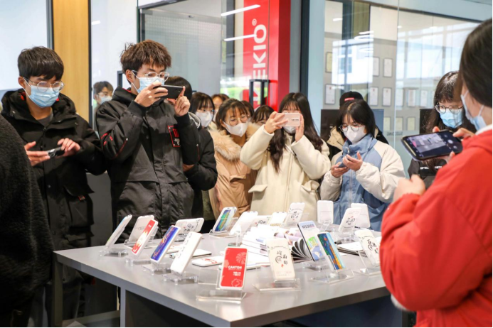 见习活动分为“电子产品体验”、“生产流程参观”、和“总结交流提升”三个环节。在公司一楼的产品体验展厅,人事部主管白怀英对公司的企业文化、产品研发设计、生产及销售进行了详细的讲解,并邀请同学们参与了公司新产品的体验活动。