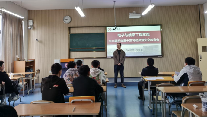 11月13日上午,pa电子官方网站1号教学楼1308教室召开了2024届毕业生集中实习动员暨安全教育培训会。会议由学院副院长宋权华主持,学院党总支副书记蔡正旺、实习班级辅导员张宇航、实习带队教师邬子逸以及参加本次集中实习的全体学生参加了会议。