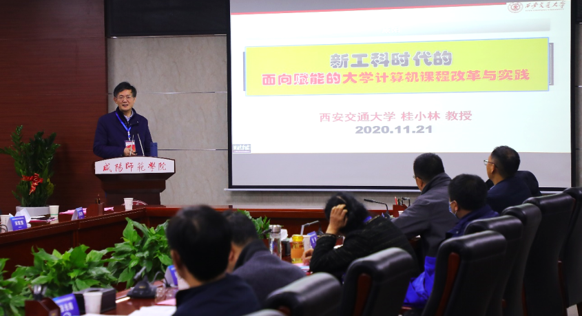 会议特别邀请西北大学耿国华教授作了题为《新时代计算机基础教育改革面临的机遇与挑战》和《课程资源与混合式课程建设的探索与实践》的报告,耿教授从国家需求、计算机基础课程体系改革、计算机课程资源建设、混合式教学改革与实践模式及案例等方面对高校计算机课程教学面临的机遇与挑战进行了深刻剖析。会议还邀请西安交通大学桂小林教授作了题为《新工科时代面向赋能的大学计算机课程改革与实践》的专题报告,桂教授从新工科理念下的一流专业建设、计算思维的起源与发展、工程教育认证对赋能教育提出的新要求、物云大智为赋能教育提供的新机遇、基于赋能的大学计算机改革与实践等方面全面分析了工程教育认证、计算机课程体系改革、学生应用能力培养等问题。