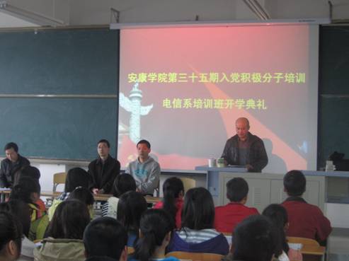 3月24日上午8点,pa电子官方网站第35期入党积极分子电信系培训班开学典礼在江北校区1号楼1301教室隆重举行。典礼由系党总支组织委员王克刚主持,系党总支书记李红兵、宣传委员徐江涛、学生党支部书记石纭昊和35期入党积极分子培训班的220余名学员参加典礼。