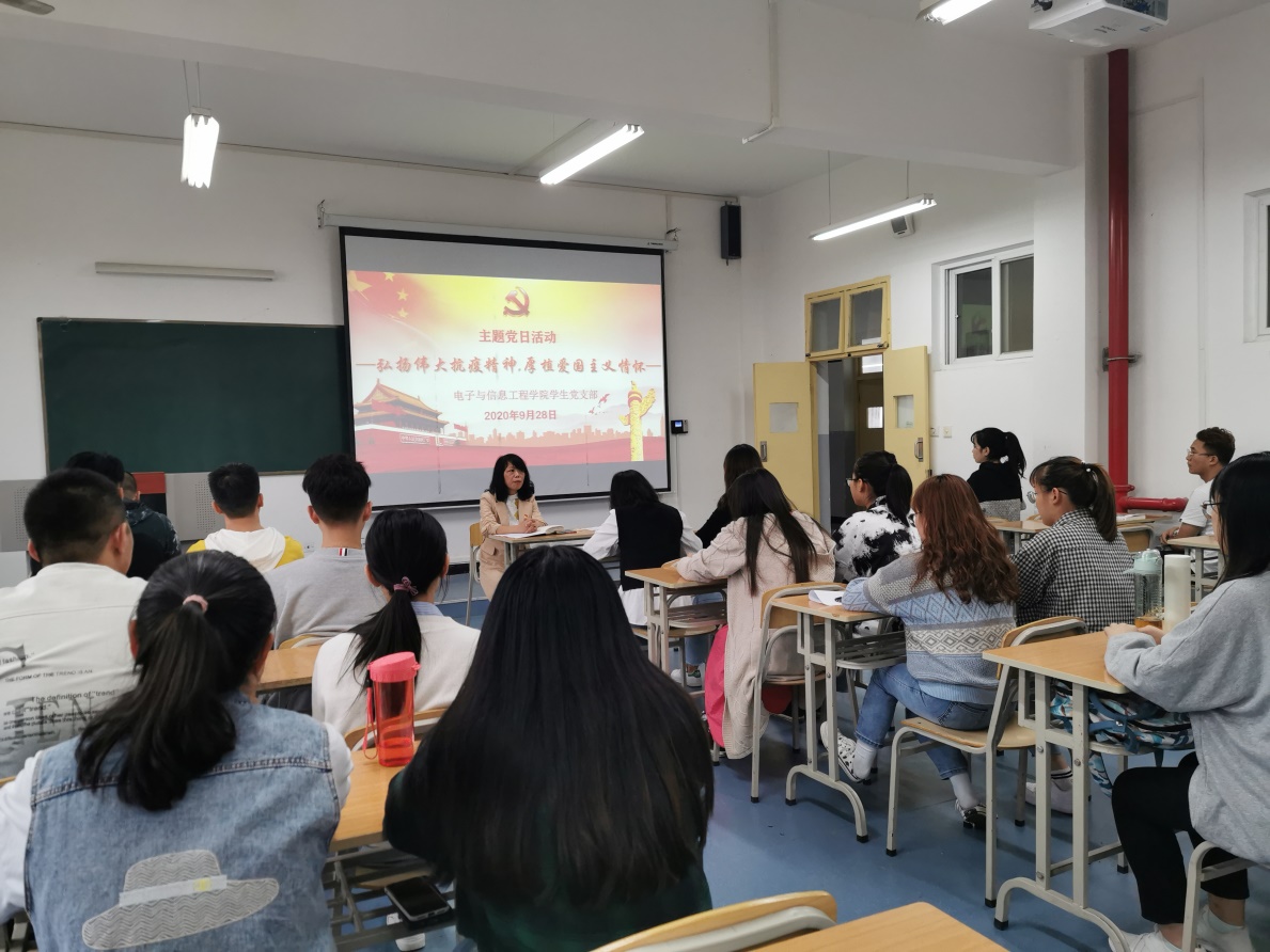 为共同庆祝新中国成立71华诞,以实际行动向祖国献礼,2020年9月28日,pa电子官方网站学生党支部组织全体学生党员开展了主题为“弘扬伟大抗疫精神,厚植爱国主义情怀”的党日活动。pa电子官方网站党总支书记于咏梅、学工办主任石纭昊、学生党支部书记成英丽、支委成员李章雨、程晓梅等参加了此次活动。