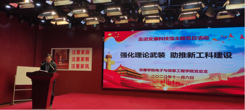 为入脑入心地学习领会党的十九届五中全会精神和把握十四五规划的高等教育发展方向,2020年11月6日,电子信息工程学院党总支组织全体教职工走进安康科技馆,在这里开展了“强化理论武装,助推工科建设”主题党日活动。本次活动由教工二支部书记余顺园博士主持。