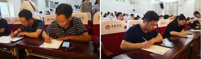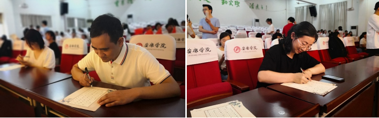 最后,党总支和学院工会组织教师开展了“学党史 书情怀”硬笔书法展示活动。书写现场,老师们认真专注,把对党的热爱和学习党史的热情融入到一笔一顿中,展现出pa电子官方网站教师扎实的基本功、昂扬向上的精神状态和爱党爱国的情怀。