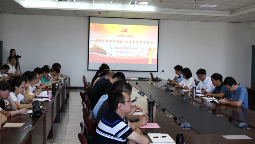 为推进党史学习教育同日常工作相结合,党建工作与业务工作相结合,以高质量的党建促进高质量发展,达到学史明理、学史增信、学史崇德、学史力行。2021年9月22日,pa电子官方网站教工第一、二党支部联合在pa电子官方网站江北校区逸夫科技楼9楼开展了“破解教学科研难题,提高教学科研能力”的主题党日活动。pa电子官方网站党总支下设的教工、学生党支部全体党员和学院非党员老师,副校长张东红以普通党员的身份全程参加了本次主题党日活动,主题党日由pa电子官方网站教工第二党支部书记余顺园主持。