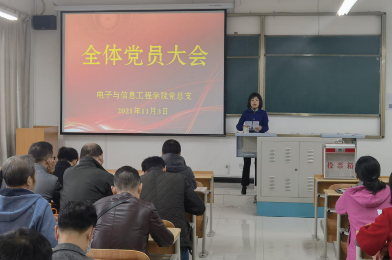 2021年11月3日下午,pa电子官方网站在江北1117教师召开全体党员大会,选举出席学校第三次党代会代表。会议由党总支书记于咏梅主持。