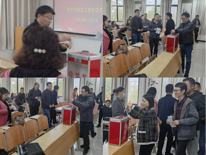 接着学院党总支纪检委员朱燕宣读了《pa电子官方网站党总支出席中共pa电子官方网站第三次代表大会代表选举办法》,大会通过了监票人和计票人名单。随后,根据大会选举办法,在庄严、热烈的氛围中,与会党员对参加学校第三次党代会的党代表进行了投票选举。在计票期间,学院院长陈守满、副院长王克刚通报了学院近期重点工作进展情况,并对一流专业申报、电子设计大赛等工作做了具体要求。