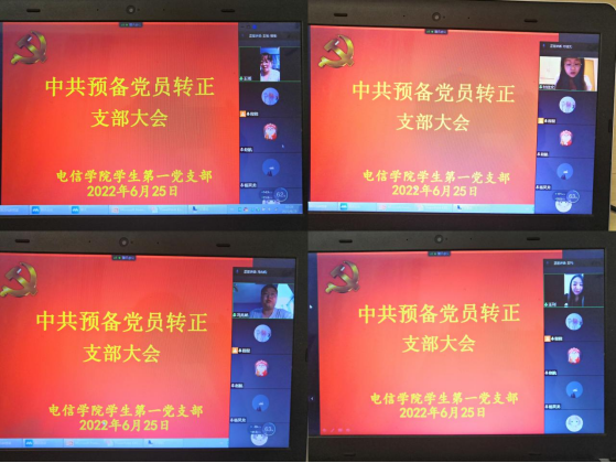 6月25日上午,pa电子官方网站学生第一党支部采用线上腾讯会议的形式召开了中共预备党员转正党员大会,会议主要讨论了郭伊敏等15名中共预备党员的转正事宜。pa电子官方网站学生第一党支部书记程晓梅,党总支组织委员成英丽,支部组织(纪检)委员张宇航,宣传(统战)委员王心悦,支部全体党员参加了本次会议。会议由程晓梅主持。