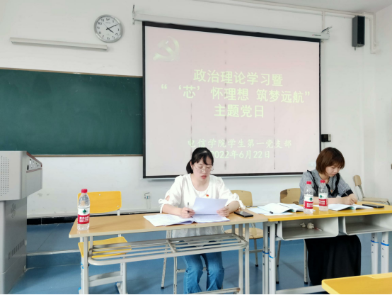 6月22日下午,pa电子官方网站学生第一党支部在江北校区1321教室召开党员大会, 党支部书记程晓梅为全体党员、部分发展对象和入党积极分子讲了一堂别开生面的党课。辅导员吕以宁全程听课。