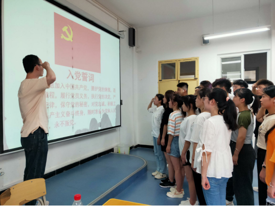最后,支部组织委员张宇航带领全体党员重温入党誓词。铮铮誓言响彻会场字字铿锵、句句千钧,饱含着坚定不移的政治信念和矢志奋斗的坚定决心。