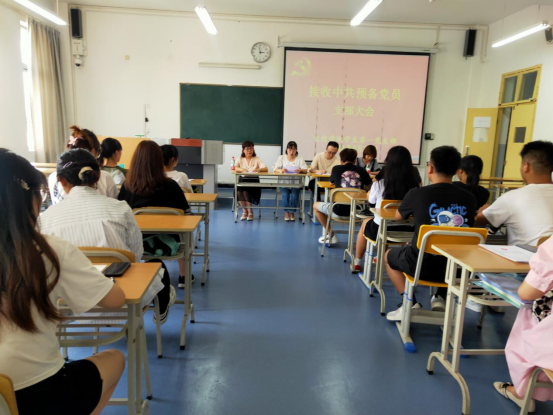 张宇航向大会报告8名发展对象“推优”、政审、公示、培训、预审的情况,表明支委会的意见。与会党员结合发展对象的思想汇报和入党申请书及对其平时的了解充分发表意见。与会正式党员以无记名投票方式进行表决,现场公布投票结果,支部大会同意接收肖薇等8名发展对象为中共预备党员。