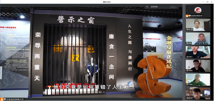 接着,全体师生观看警示教育片《金融反腐正风纪》,以违法违纪典型案件为戒,筑牢思想防线,以案警醒,以案为戒,深刻汲取反面典型教训,强化廉政意识;之后观看纪律教育公开课“从延安精神中汲取全面从严治党的力量”,为此,要坚持把党的政治建设摆在首位,坚持党的领导,增强“四个意识”、坚定“四个自信”、做到“两个维护”,自觉在思想、政治以及行动上同党中央保持高度一致。