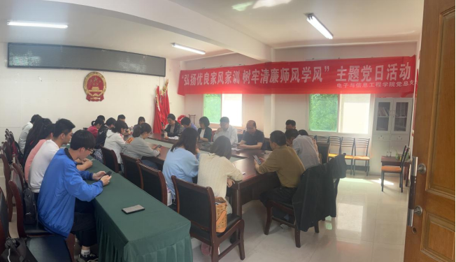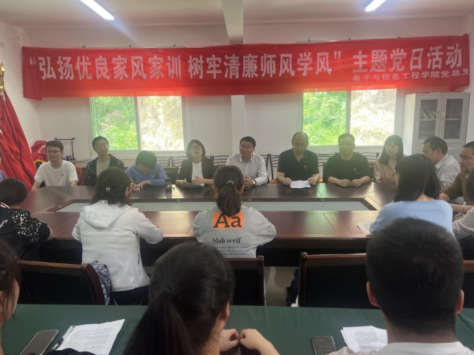 为了深入学习贯彻党的二十大精神,为落实立德树人根本任务营造风清气正的政治生态,在打造清廉学校中积极探索推进优良党风、师风、家风一体化建设,涵养清正校风、教风、学风,构筑新时代清正廉洁的教育高地。4月15日,pa电子官方网站党总支开展“弘扬优良家风家训 树牢清廉师风学风”主题党日活动,党委委员、副校长张东红,党总支下设四个党支部所属党员及教职工、部分学生党员参加。pa电子官方网站党总支书记于咏梅主持活动。