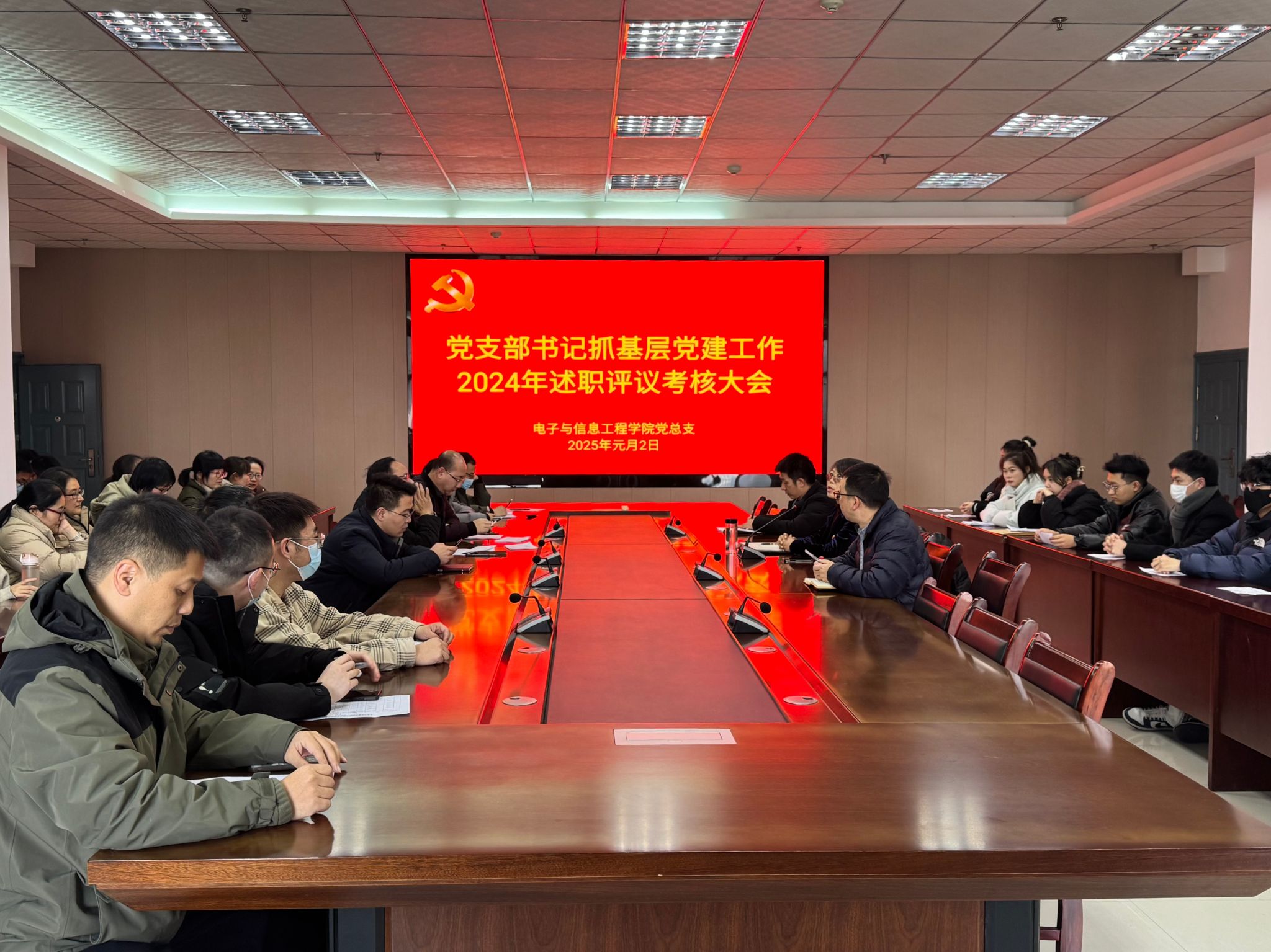 根据《关于开展2024年基层党建述职评议考核工作的通知》(校党发〔2024〕118号)文件精神,2025年1月2日,pa电子官方网站党总支在逸夫科技楼9楼会议室,召开党支部书记抓基层党建工作2024年述职评议考核大会。pa电子官方网站党总支委员、各党支部书记出席会议,pa电子官方网站全体党员参加此次会议。本次会议由党总支书记于咏梅主持。