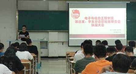 2019年6月12日晚7:30我院于1304教室举办第四届团员代表大会 、第五届学生代表大会。到场的有pa电子官方网站团总支书记陈浩老师、学生组织成员及大一大二团员代表和学生代表,本次大会由桂军虎同学主持。