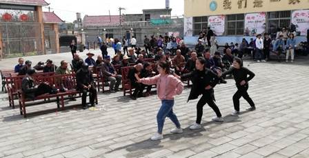 卫生清扫工作完毕后,全体成员在院子集合,给在座的老人分发牛奶、水果等慰问品,并为老人们表演了精彩的节目。