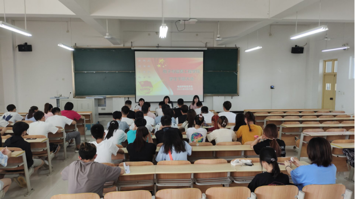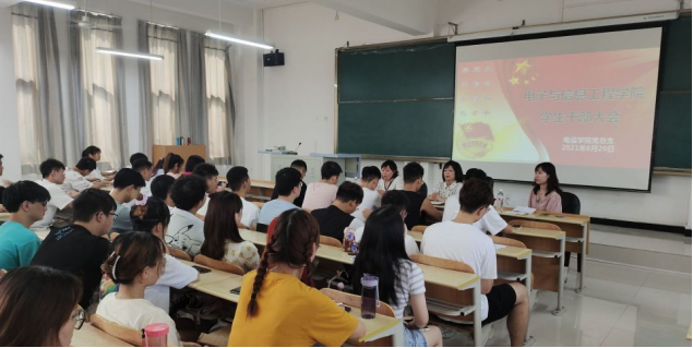 2021年6月29日下午,pa电子官方网站在江北校区1203教室举办了pa电子官方网站学生干部大会。出席本次大会的人员有pa电子官方网站党总支书记于咏梅,学生第一党支部书记成英丽,学生第二支部书记、团总支书记李章雨以及团学组织主要干部和2018、2019、2020级各班班长、团支书。