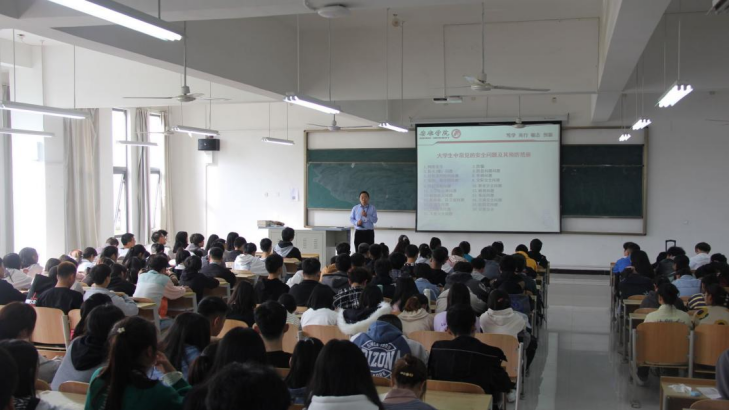 提高安全意识,保障自身安全。王开忠指出要推动校园安全教育工作,必须提高学生安全防范意识。为积极预防、降低和减少学生各类伤亡事故,消除校园存在的安全隐患,王开忠从大学生安全教育的总体形势和开展校园安全教育的重要意义角度向学生作了详细介绍,具体内容涵盖:网络安全、防诈骗、防火(爆)、防盗、防抢劫、防溺水、防传销陷阱、交际安全、交通安全等21个方面,并以实际案例的形式向同学们列举了大学生活中常见的安全问题及有效的预防措施。