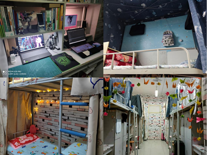 本次大赛于11月26日正式开始,所有同学积极参加,对自己的宿舍进行美化。同学们精心准备,仔细装扮,认真打扫。经过一周时间的精心准备,紧凑的八人间中增添了许多“美丽的风景”。飘零的落叶被人捡起,再次焕发自己色彩;干净整洁的桌面,配着清爽的贴纸,展现着大家心中的秩序感;废弃的快递盒也被大家收集起来,搭建出一个环保小人,寄托了新生们对废物利用的思考;还有各式各样的小玩偶,无不彰显着我院学生高昂的热情和充满创新的思维。