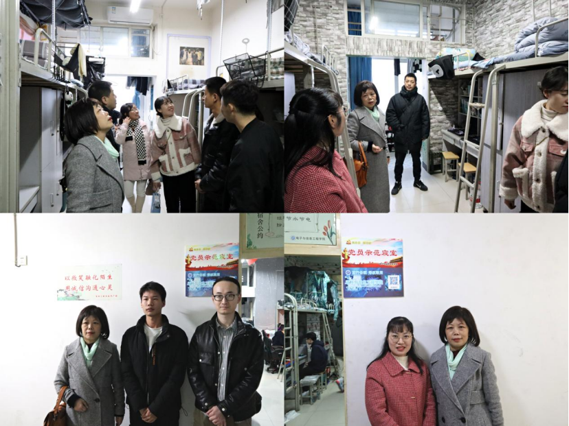 12月8日,pa电子官方网站党总支书记于咏梅与全体学工团队成员组成评委小组对宿舍整体情况进行评价与指导