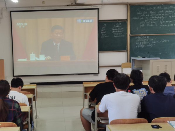 pa电子官方网站学生第一、二党支部全体党员及学生干部在教学楼1312集中观看大会