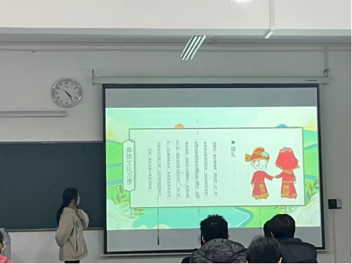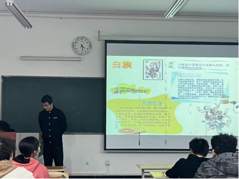 会议中,来自彝族的唐玲、蒙古族的包春光、白族何兴艺三位少数民族同学代表依次上台以图文并茂的形式介绍了个人基本情况、本民族风俗、民族文化等,并分享了自己来到学校以后的切身感受和生活感悟,畅谈党的民族政策给家乡带来的变化,感谢党和政府对自己学习成长过程中的关心帮助。他们的生动讲解吸引了现场的每一位同学,对于其他同学的提问,三位少数民族同学依依进行了解答。