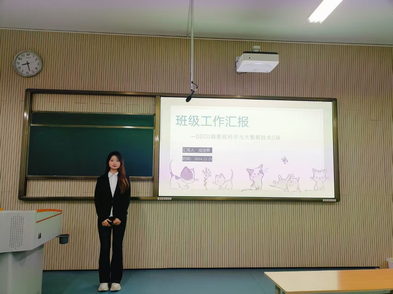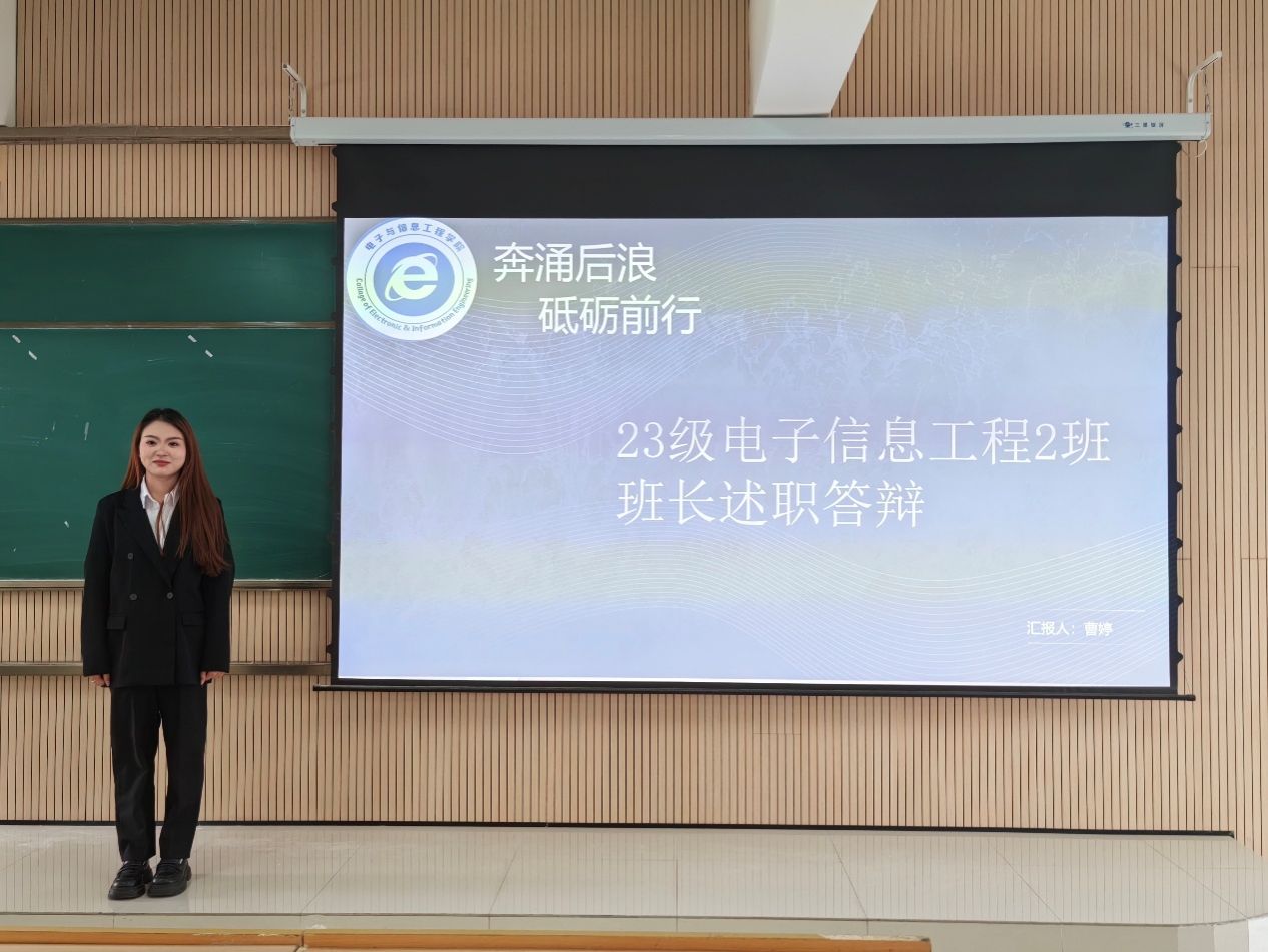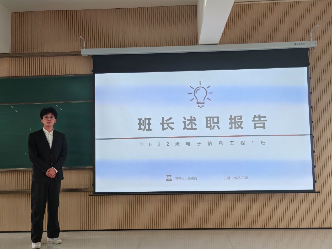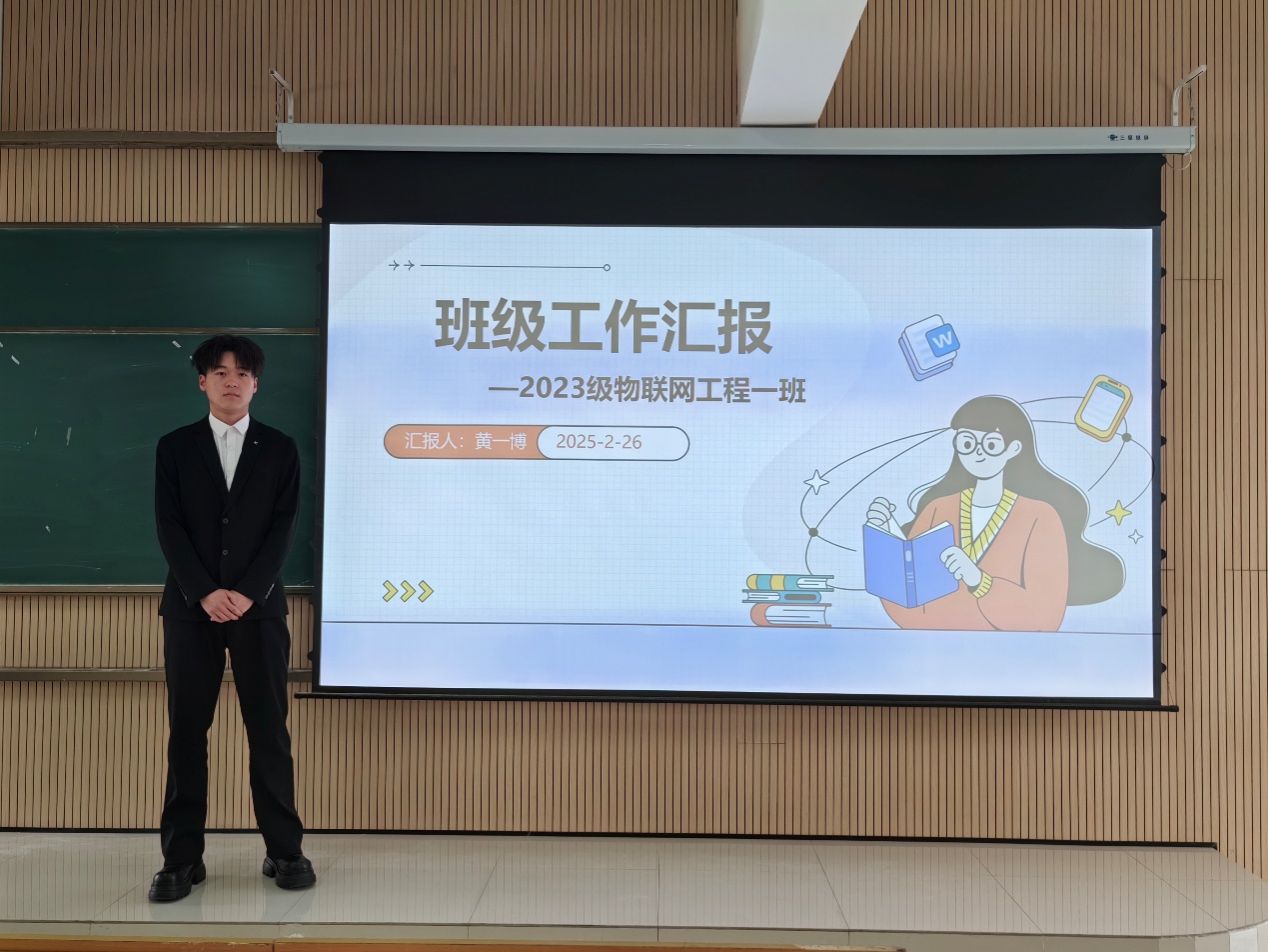 会议的第一阶段为班长述职答辩环节。各班班长精心准备,借助PPT展示,从班级概、学风建设、宿舍建设、组织建设、班级成果展示与未来展望等多个维度,全面汇报了班级工作成果。他们结合班级特色,毫无保留地分享管理经验,以问题为指引,认真总结经验,深入查找存在的不足,并对新学期班级建设制定了清晰规划。汇报过程中,班长们图文并茂,坦诚展示班级的优点与不足,提出改进班级管理的方式方法。
