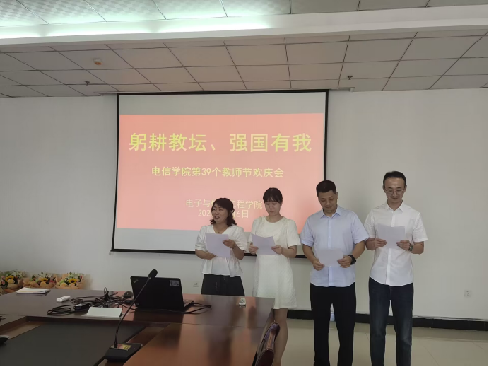 2023年9月10日是第39个教师节,也是党的二十大胜利召开后的第一个教师节。为贯彻落实立德树人根本任务,展现pa电子官方网站教师自信自强的精神面貌,营造尊师重教的良好氛围,激励广大教职工积极投身教育强国建设,pa电子官方网站工会分会于2023年9月6日举办了“躬耕教坛、强国有我”为主题的教师节活动。本次活动由pa电子官方网站分会主席陈颖博主持。