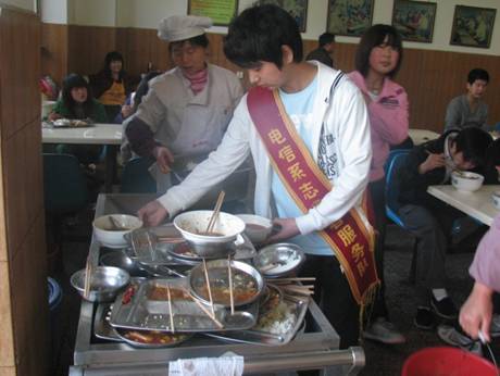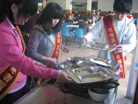 本次饭堂志愿者服务活动由我系10级的三十位志愿者组成,分为六个小组,在中午和下午用餐时,佩戴服务者标志进入饭堂进行文明用餐的宣传,提醒同学们用餐结束后自觉将餐盘端至残食车处,方便后面的同学用餐。志愿者还维持饭堂秩序,提醒大家自觉排队,养成良好就餐习惯。