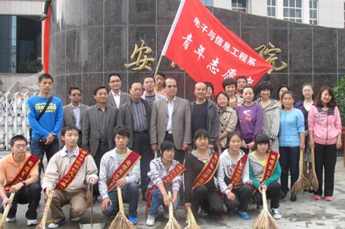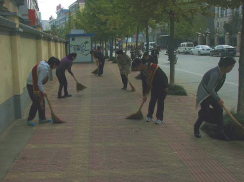 为迎接省级园林城市考核验收工作,弘扬大学服务社会的宗旨,电信系师生与学院机关三支部工会小组走上街头,开展义务大清扫活动活动。学院党委委员、人事处处长罗文谦,教务处长单福东,计财处处长杨义峰,电信系党总支书记李红兵,人事处副处长郭全寿、谢军等领导带领师生志愿者在南环路片区学院责任区,规范各门店门前车辆停放,拔除路边、树下杂草,清扫人行道路,清除电线杆上的乱贴乱画,经过一个多小时的劳作,片区面貌一新。