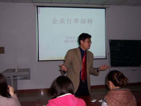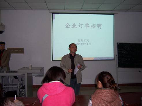 11月7日下午,电信系、数学系联合主办的IT行业企业订单招聘会在1429教室召开。行知汇元西安中心主任马红兵、电信系党总支书记李红兵、数学系党总支书记李延福、计算机科学与技术专业、电子信息工程专业、应用数学专业的60余名学生及辅导员参加会议,会议由李红兵书记主持。