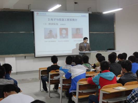 电子与信息工程系11月3日晚在1301室开展2013级新生入学教育。电信系教学主任陈守满老师做了题为“在大学里如何搞好学习与生活的关系”专题讲座。