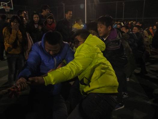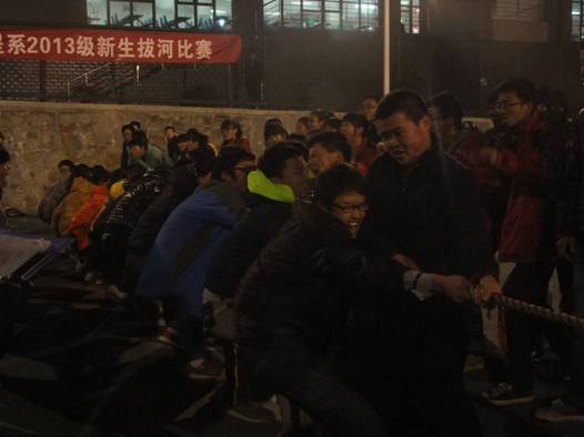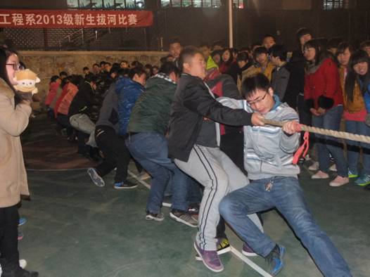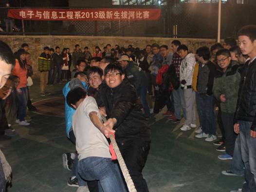 2013年12月10日晚,电子与信息工程系在篮球场举行新生拔河比赛。我系13级7个班都派出实力强劲的代表上场迎战。参赛选手们个个生龙活虎,斗志十足,其他的同学都主动组成拉拉队,为所在班级的选手加油,辅导员石纭昊也加入到了人数较少的计算机应用技术班。在经过激烈的比赛过后,数字媒体技术获得第一名,电子信息工程(2)班获得第二名,计算机科学技术(1)班获得第三名。