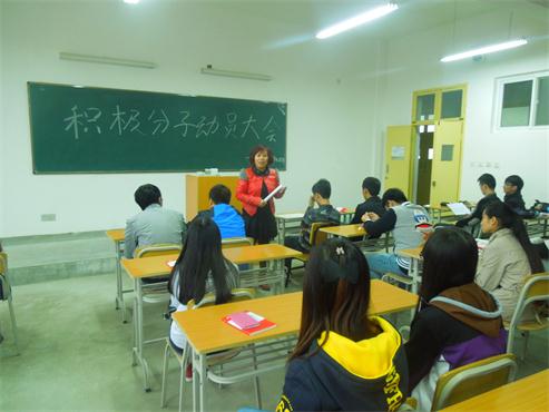 会上成英丽老师做了动员讲话。她首先对参加这次培训学习的全体学员表示诚挚的祝贺。她说,党校培训是成为一名中共党员必经的一课,可以帮助同学们了解党的基本知识以及何谓党员标准、党员作风、党员精神。同时,成老师向同学们提出三点希望:第一,要认真学习党的知识和纲领、对党要有更全面和深入的了解;第二,要遵守纪律,不旷课、不迟到、不早退,珍惜这次学习培训的机会,做到自律和自我超越;第三,要端正入党动机,树立正确的世界观、人生观和价值观,在学习、生活中各方面都起到先锋模范带头作用,工作中为同学们做好服务,以实际行动争取早日加入党组织。