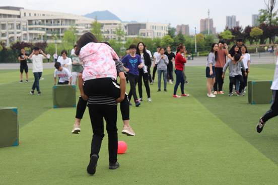 趣味运动会设置了瞎子背瘸子、"赛龙舟"、心有千千结等项目,每个项目都是考验团队里成员之间合作的默契程度和心理素质的,参赛的选手也都充分展示团队合作的重要性和超强的心理素质。同时活跃的氛围,使参赛学选手们放飞心灵,快乐相随。