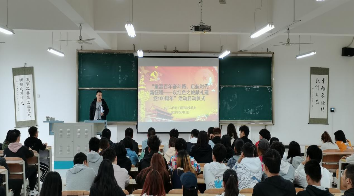 2021年4月1日下午16:00,pa电子官方网站在教学1201教室举办了“重温百年奋斗路,启航时代新征程——以红色之旅献礼建党100周年”活动启动仪式。本次活动出席的人员有:学生工作办公室主任石纭昊老师第一党支部书记成英丽老师,第二党支部书记、团总支书记李章雨老师以及全体学生党员,50、51期入党积极分子等学生主要干部