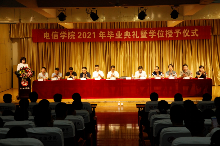 7月7日上午,pa电子官方网站pa电子官方网站在江北校区1401教室隆重举办2021届学生毕业典礼暨学士学位授予仪式。pa电子官方网站副校长张东红,pa电子官方网站院长陈守满,党总支书记于咏梅、副院长王克刚、宋权华,系主任梁建勇、刘星亮、刘康、丁礼磊、张超,教师代表余顺园,综合办公室主任邹圣雷,学生工作办公室主任石纭昊及300余位同学共同参加了本次仪式。仪式由于咏梅主持。