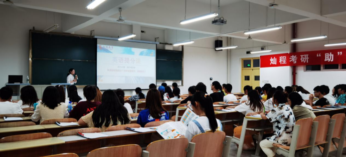 9月10日,为助力2023届同学考研,pa电子官方网站学工办牵头,特邀灿程考研机构开展英语公开课,帮助考研同学了解英语高分技巧,学习阅读和写作的方法。本次参加公开课的同学共计70余人。