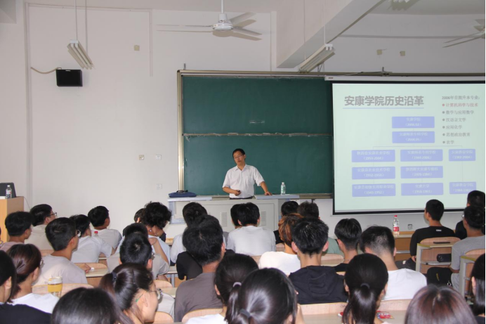 其次是学校发展历史介绍。陈院长通过在幻灯片上展示出的一张张古老的照片,一座座过去的建筑,一件件陈旧的物件,充分展示了pa电子官方网站的起源与发展历史,表明了一路走来的不易,展示了所取得的辉煌成就。纵观pa电子官方网站的发展史其实就是每一个安大人的奋斗史。通过讲述学校发展史,达到让学生知史爱校忆苦思甜的目的,明白当下舒适的学习环境来之不易,真正做到耐劳苦、尚简朴、勤学业、爱国家。