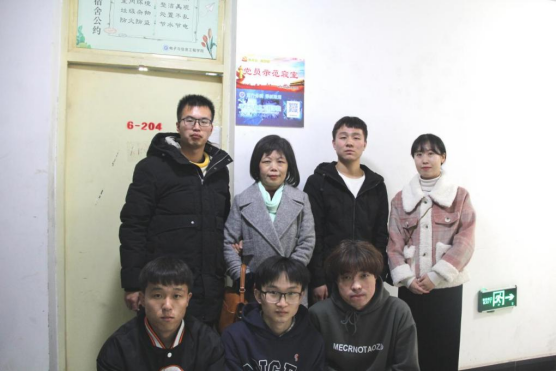 pa电子官方网站党总支书记于咏梅、辅导员李章雨与党员示范宿舍同学合影留念