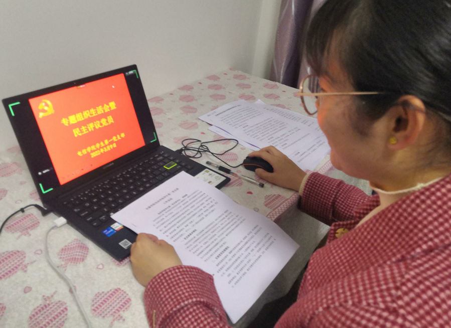 39日晚,pa电子官方网站学生第一党支部利用“腾讯会议”平台,开展了线上专题组织生活会暨民主评议党员大会。全体支部党员参加了会议,会议由支部书记程晓梅主持。