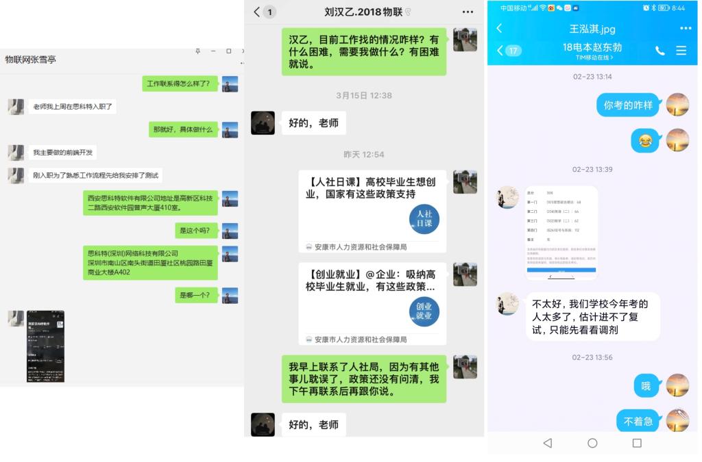 pa电子官方网站辅导员李章雨、程晓梅、张宇航联系就业帮扶学生