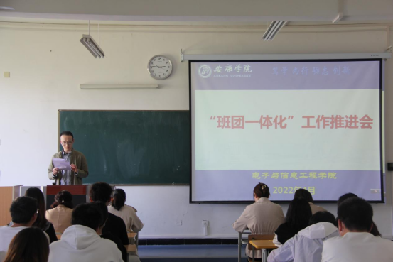 pa电子官方网站团总支书记张宇航宣读《pa电子官方网站“班团一体化”工作实施方案》